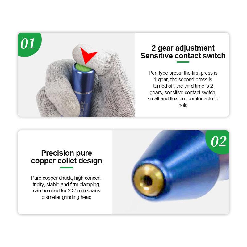 RELIFE RL-068B 智能充电式打磨笔 2档位调速 配备8个打磨头