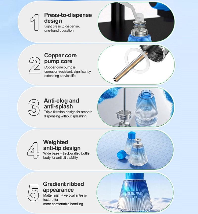 RELIFE TB3 蓝净PRO溶剂玻璃瓶 适用于洗板水 / 酒精 150ML